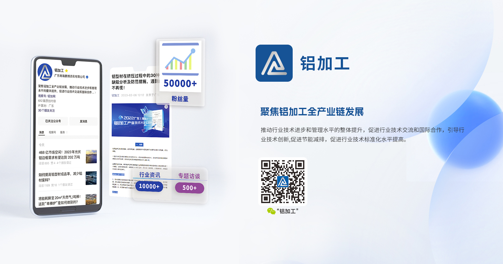 鋁加網(wǎng)(www.albiz.cn)是聞名鋁加工行業(yè)的垂直門(mén)戶(hù)網(wǎng)站,云聚鋁業(yè)新生態(tài),構(gòu)建鋁業(yè)新場(chǎng)景,以albiz.cn 網(wǎng)站為核心,以移動(dòng)云端、鋁加工微信、鋁加網(wǎng)視頻號(hào)、《鋁型材專(zhuān)刊》和《鋁世界》雜志為載體,成為了鋁加工行業(yè)資訊和精準(zhǔn)傳播的首選傳媒。鋁加網(wǎng),采集和發(fā)布全行業(yè)信息資訊,提供線(xiàn)上展覽、在線(xiàn)直播、短視頻、品牌策劃、品牌運(yùn)營(yíng)、品牌傳播等全方位的專(zhuān)業(yè)服務(wù)。